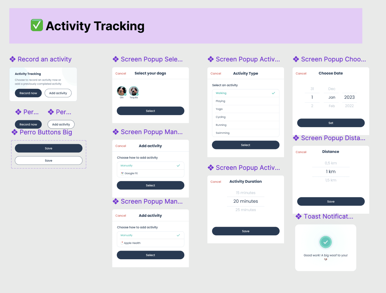 Design an app where daily dog care feels rewarding, built for manual tracking first, with wearable integration ready for later.